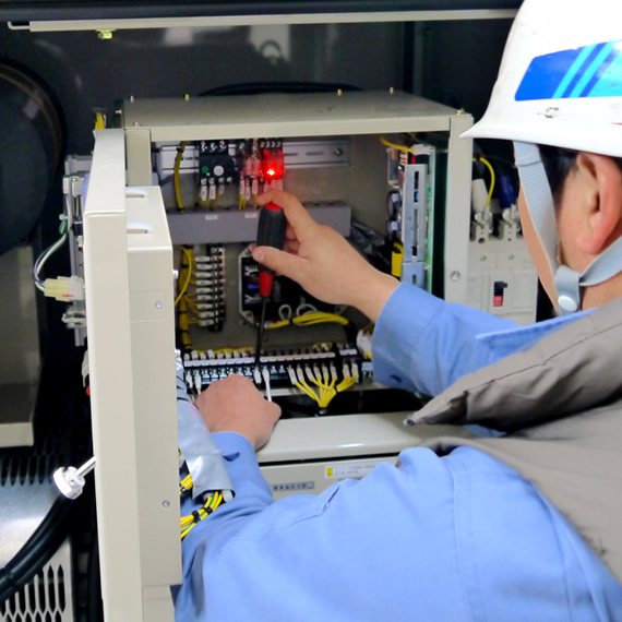 交通信号機のシステム業やマンション・工場・一般住宅などの電気工事、空調・換気システムの設置や消防整備の工事・点検などを行っております。