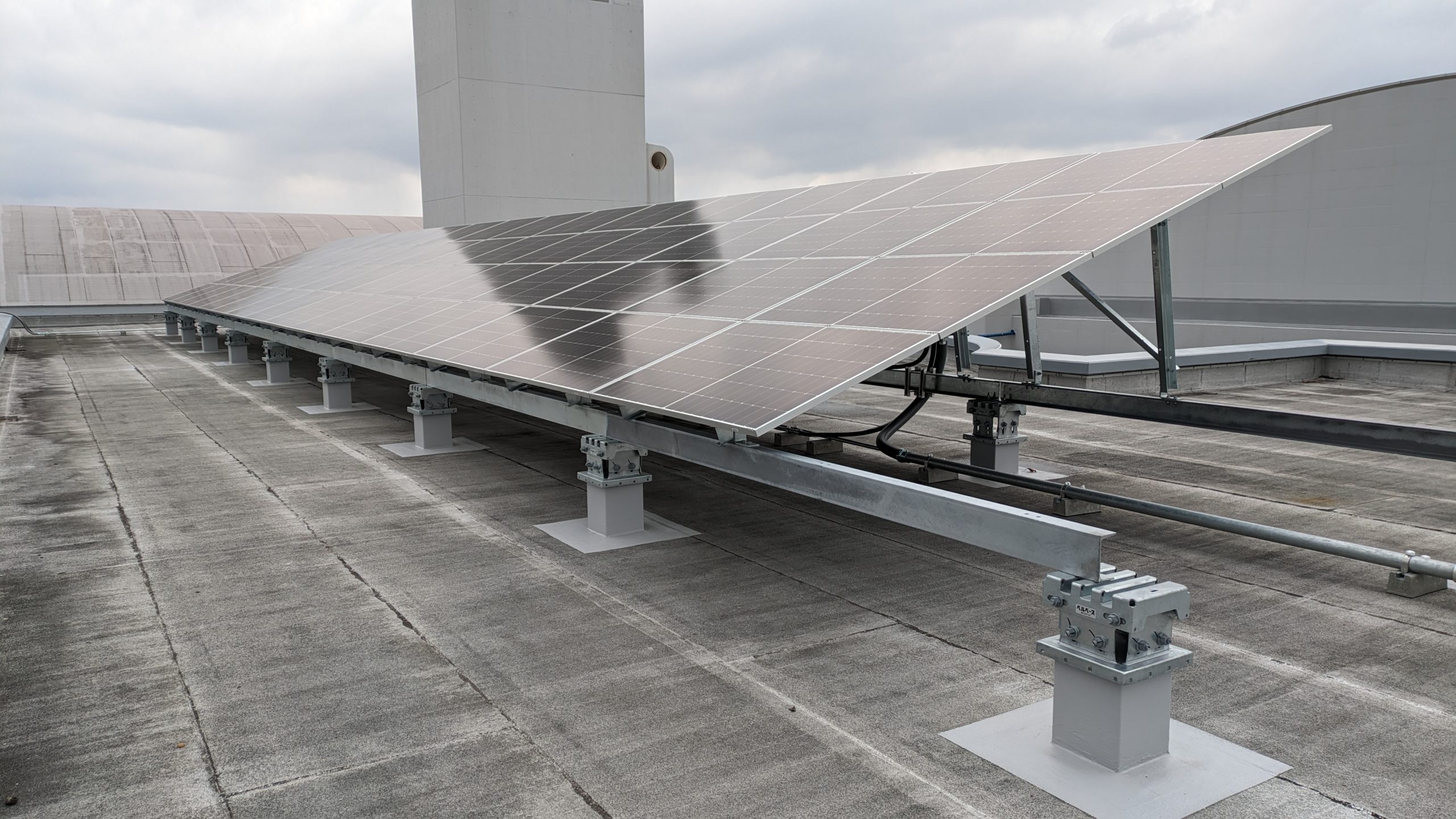 今回、北九州高等学園建屋の屋上にて太陽光発電設備の設置に携わりました。